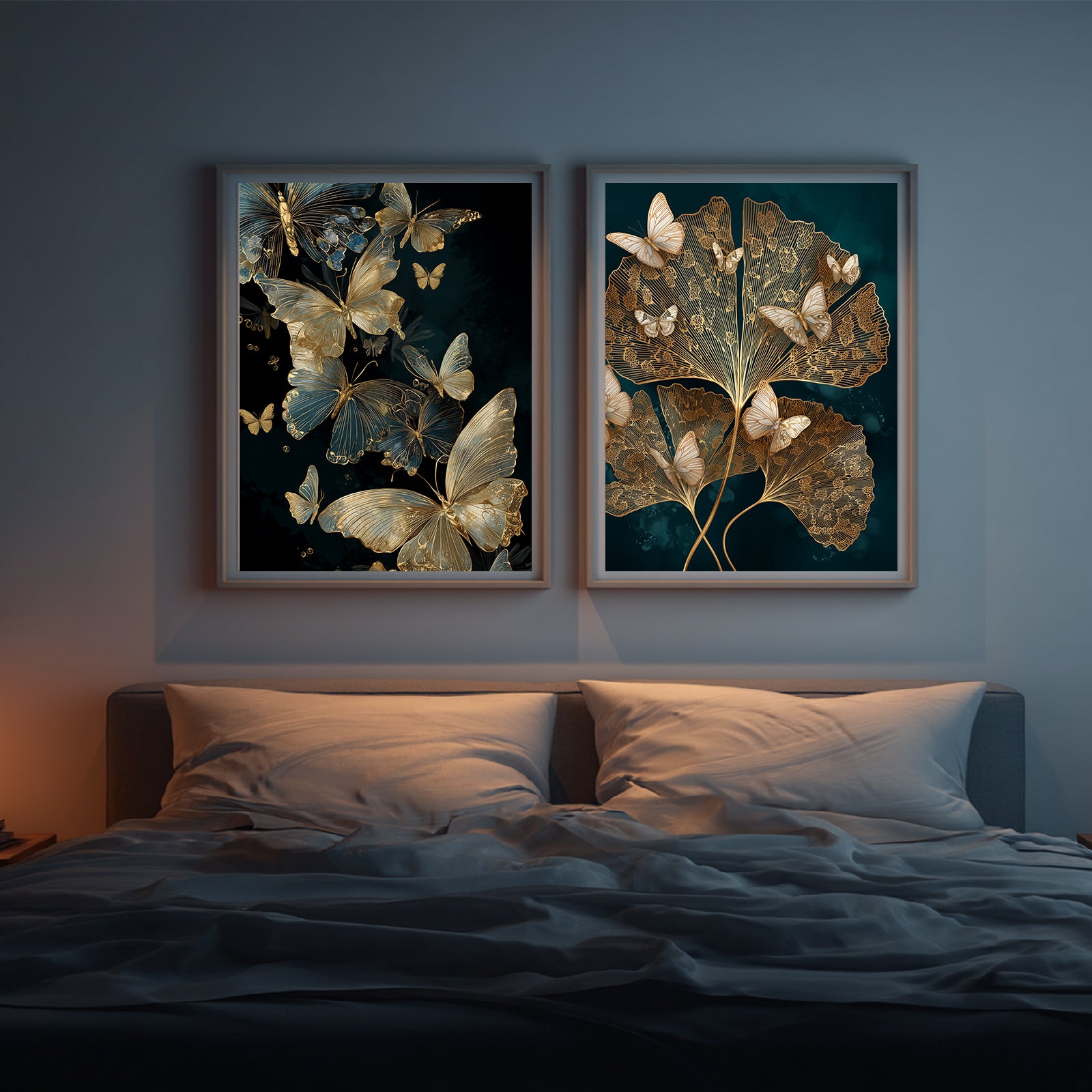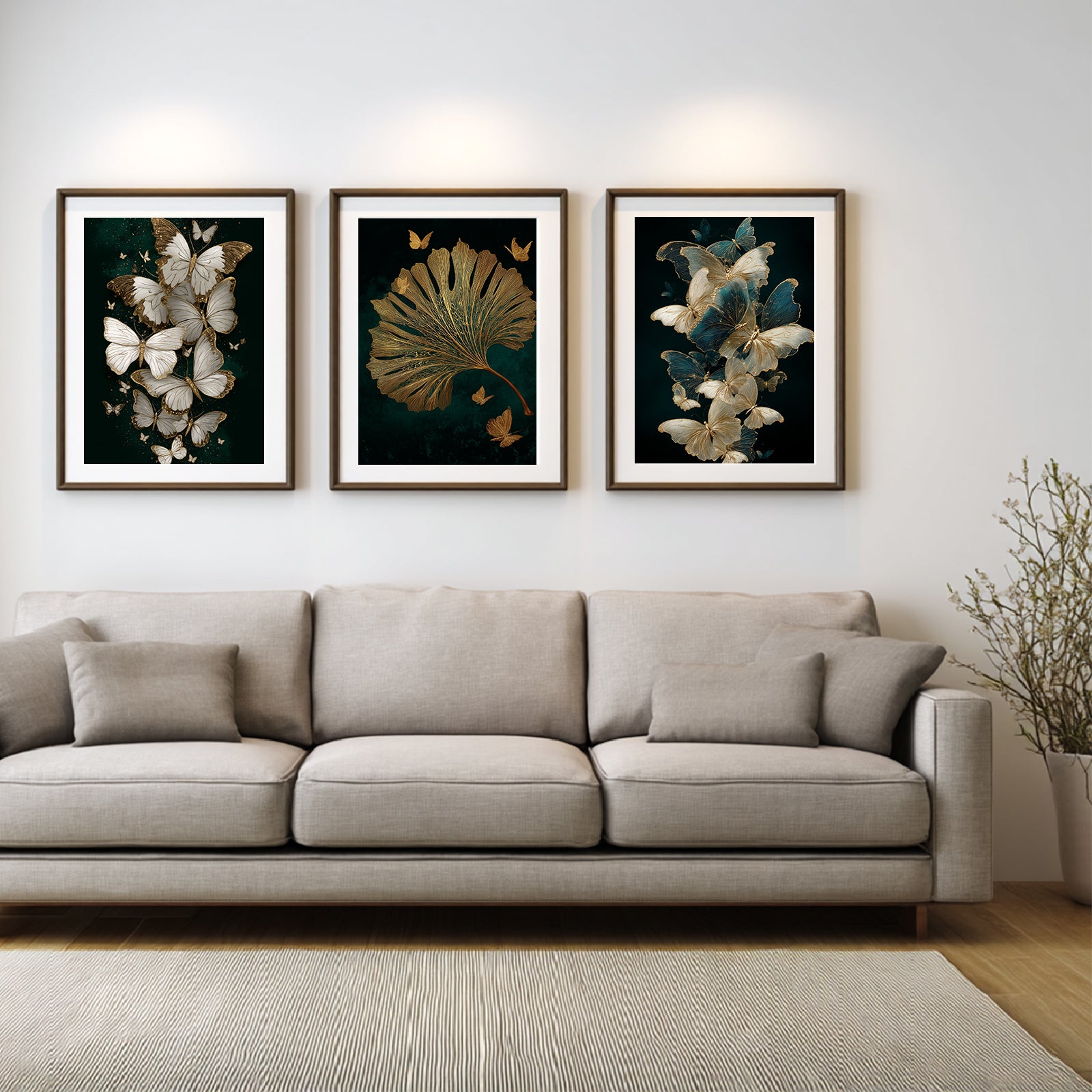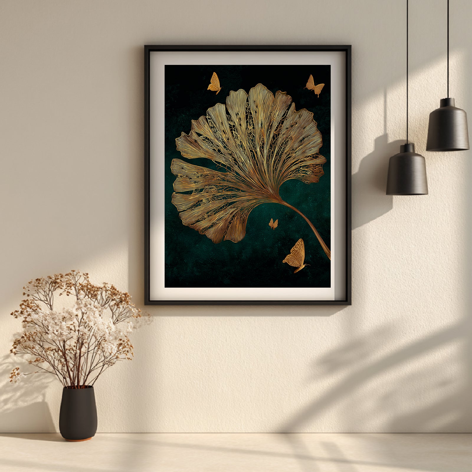 Abstract Black Gold Butterfly Leaves Canvas Painting Wall Art for Living Room Bedroom Decoration, Poster Print, Frameless