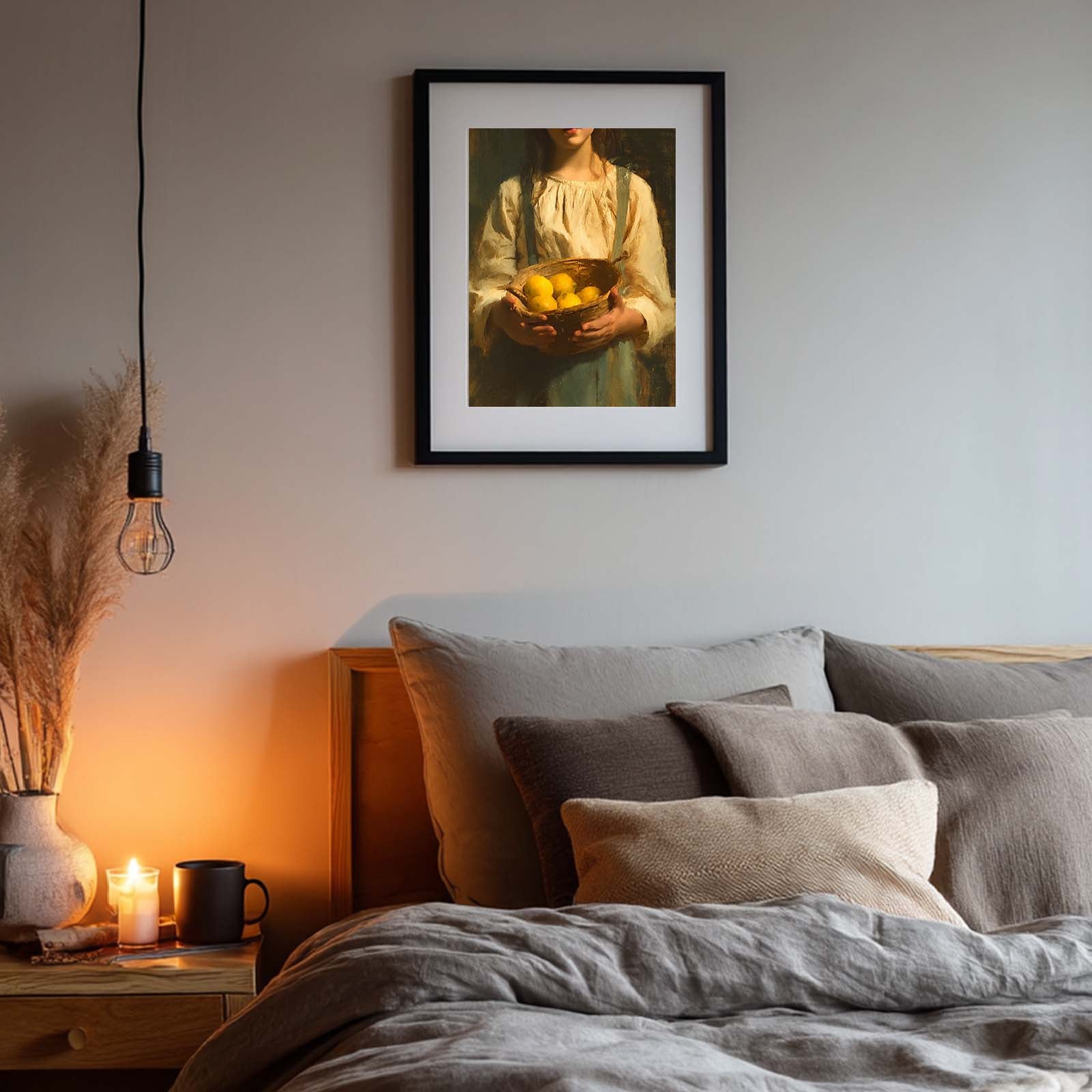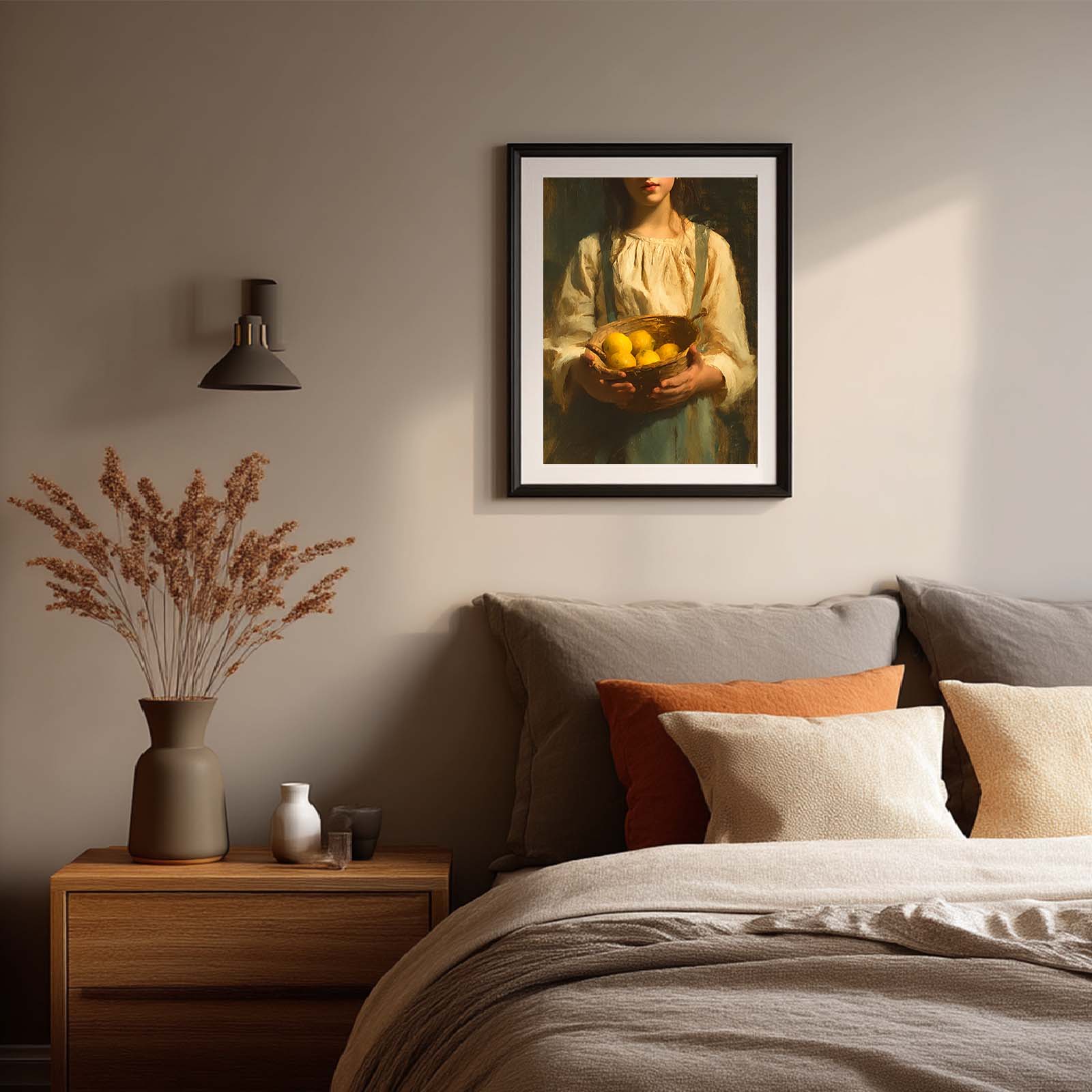 Abstract Oil Painting Vintage Beautiful Girl Holding Lemon