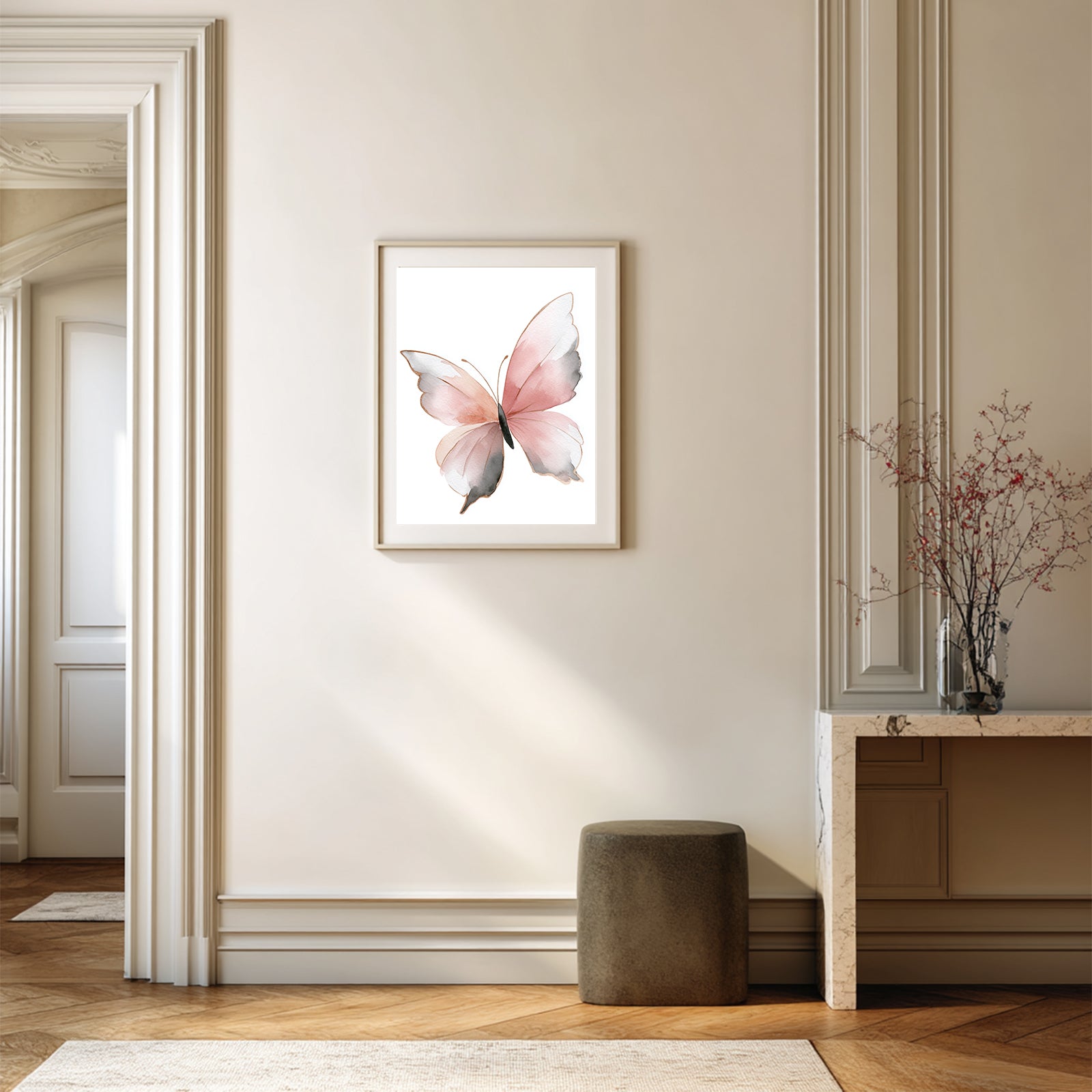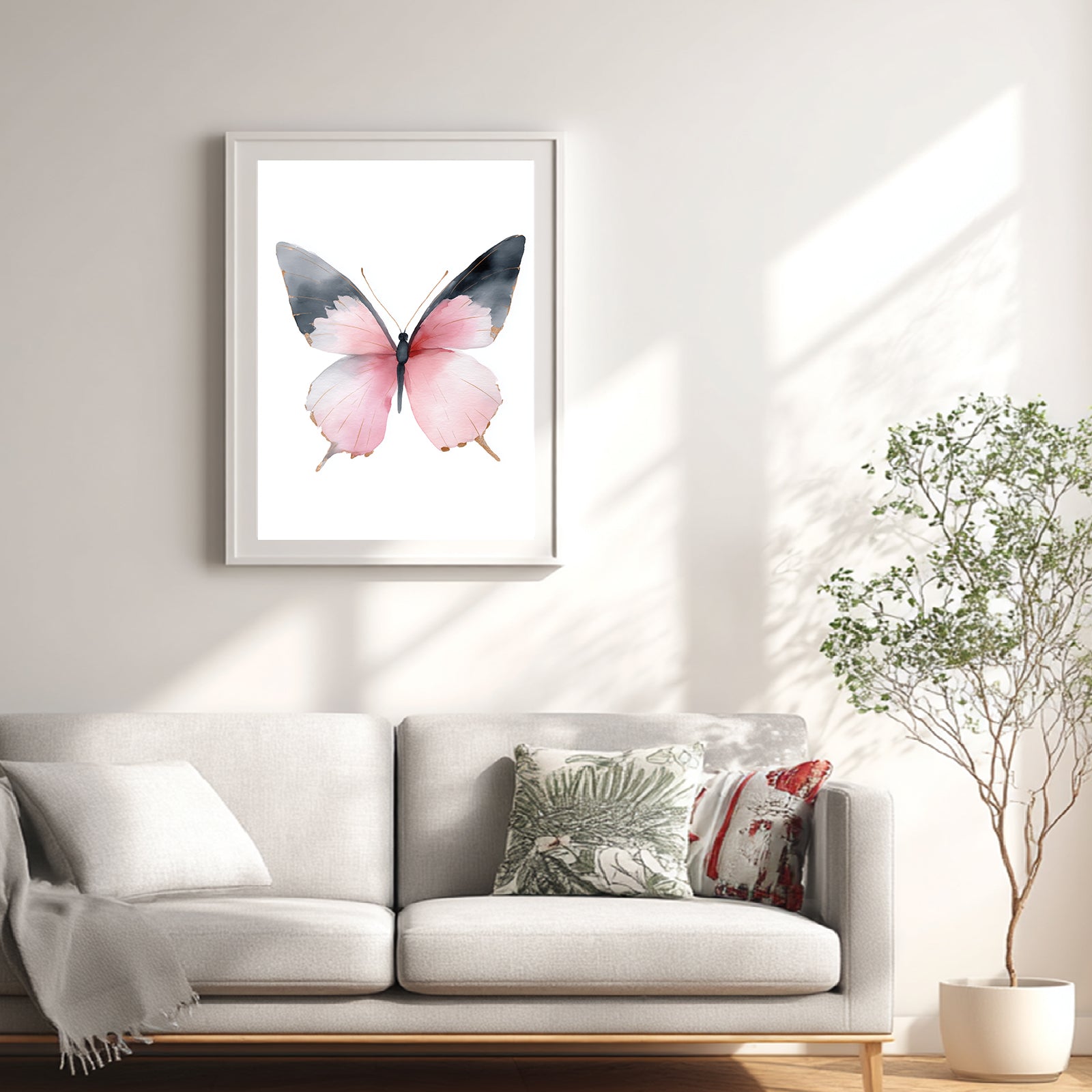 Abstract Pink Butterfly Canvas Painting Animal Wall Art for Living Room Bedroom Decoration, Poster Print, Frameless