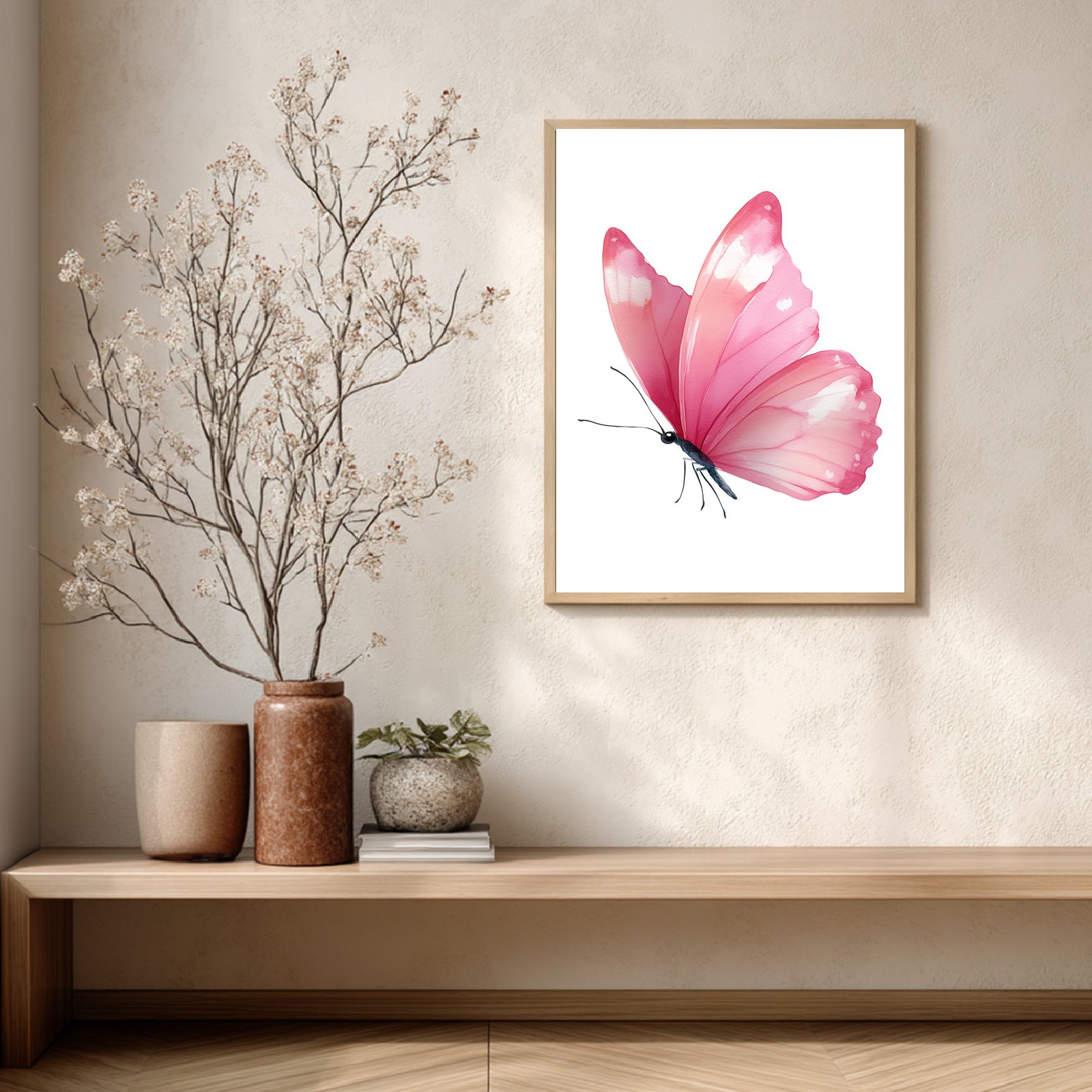 Abstract Pink Butterfly Canvas Painting Wall Art for Living Room Bedroom Decoration, Poster Print, Frameless