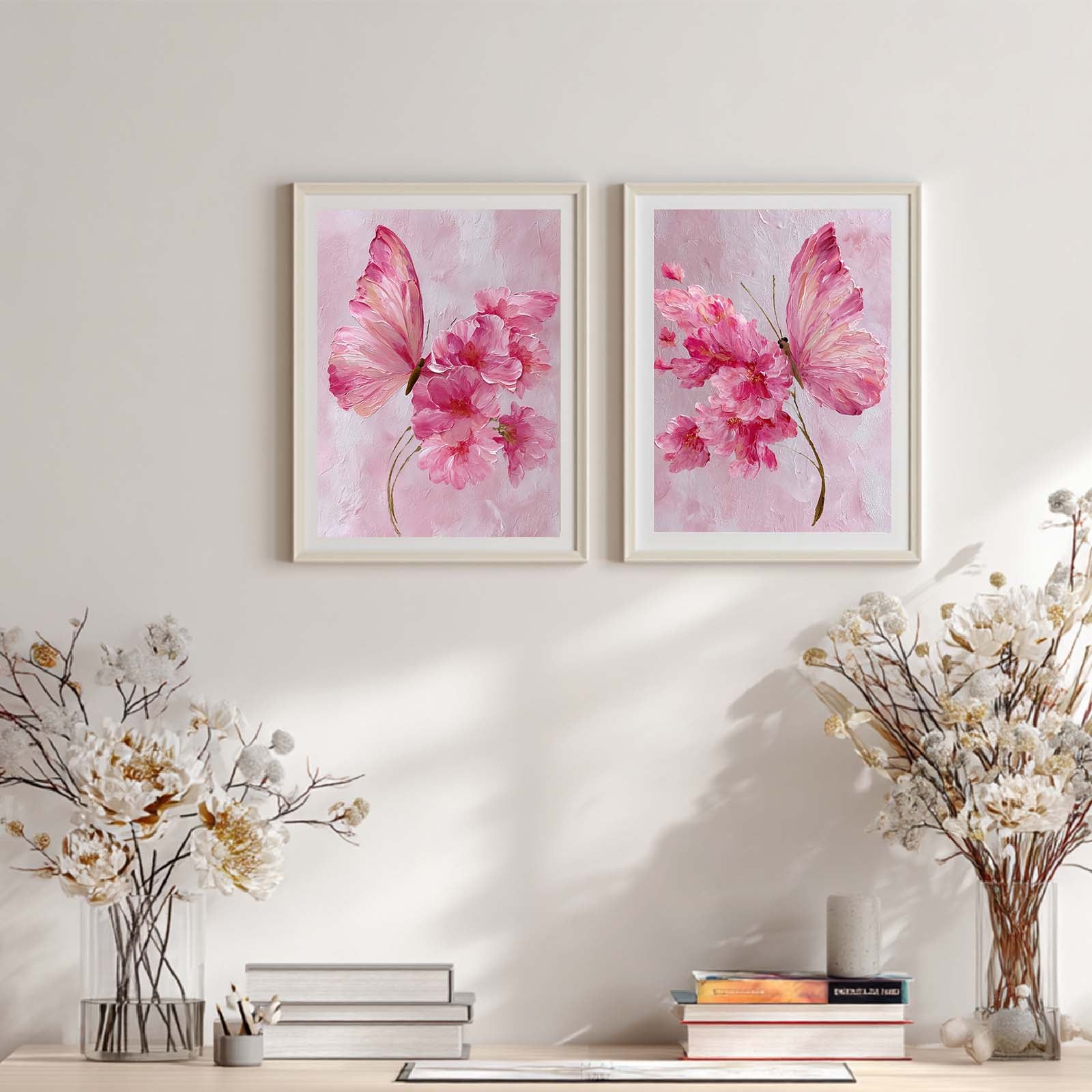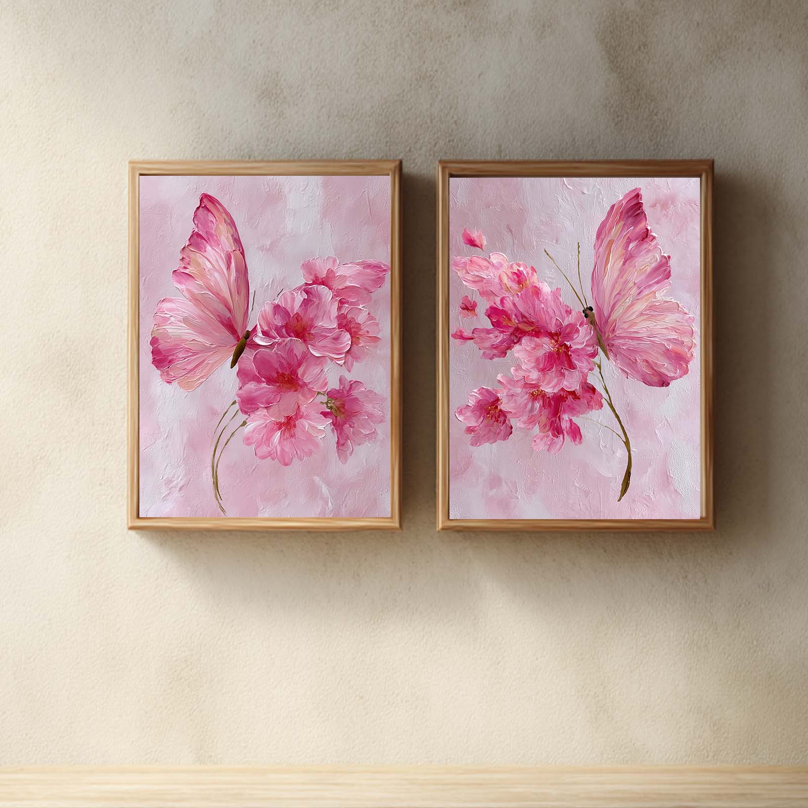 Abstract Pink Butterfly Flower Canvas Painting – Wall Art for Living Room Bedroom Decoration, Poster Print, Frameless