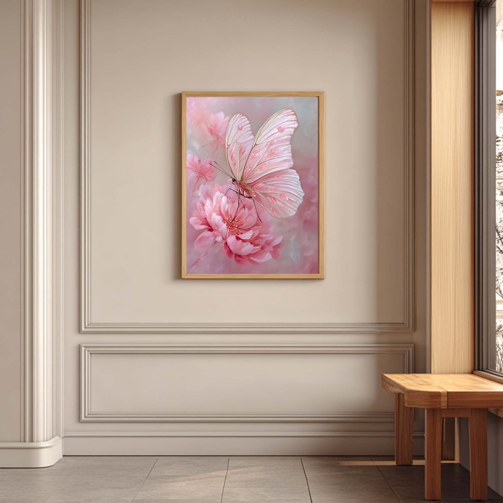 Pink Butterfly Flower Abstract Canvas Painting Wall Art for Living Room Bedroom Decoration, Poster Print, Frameless