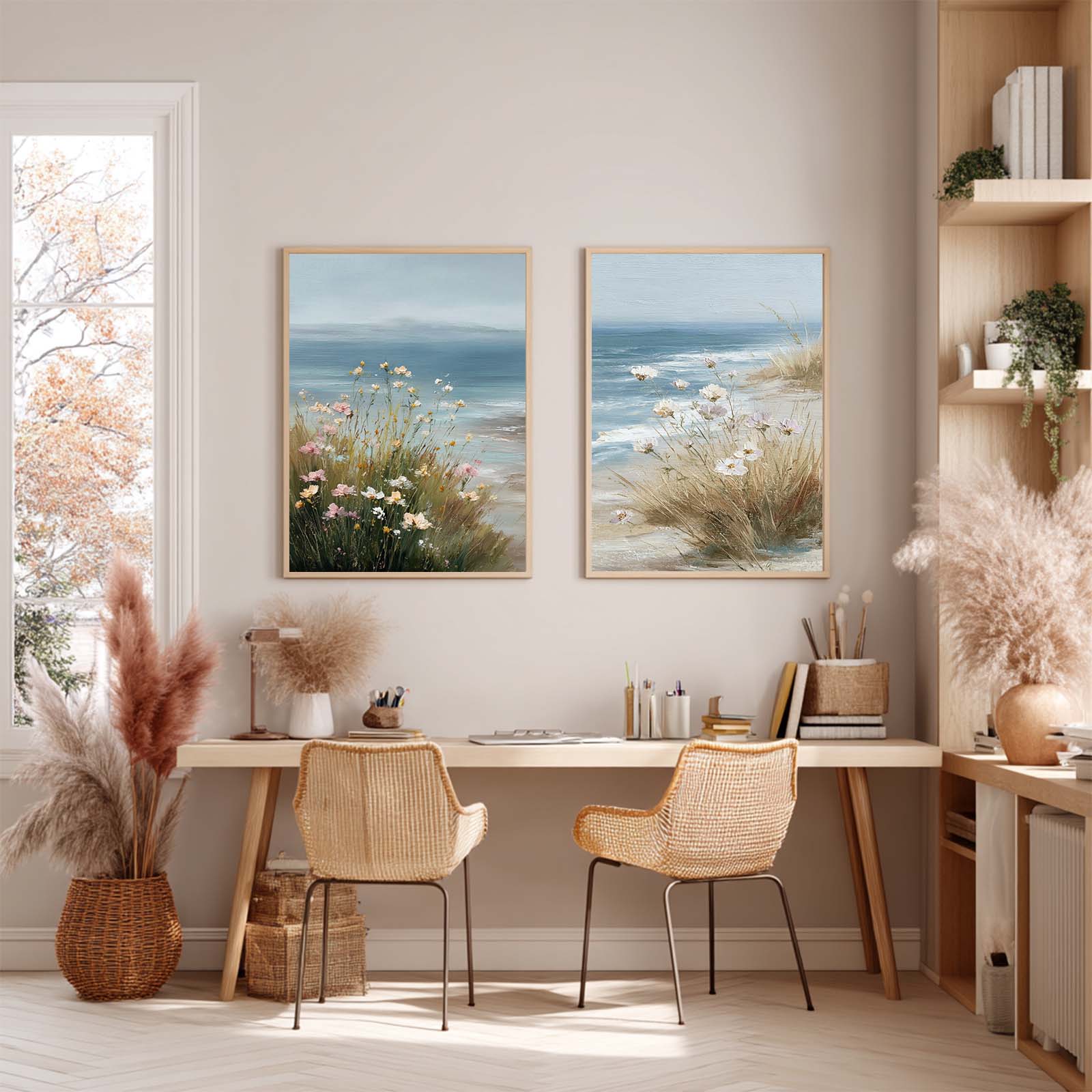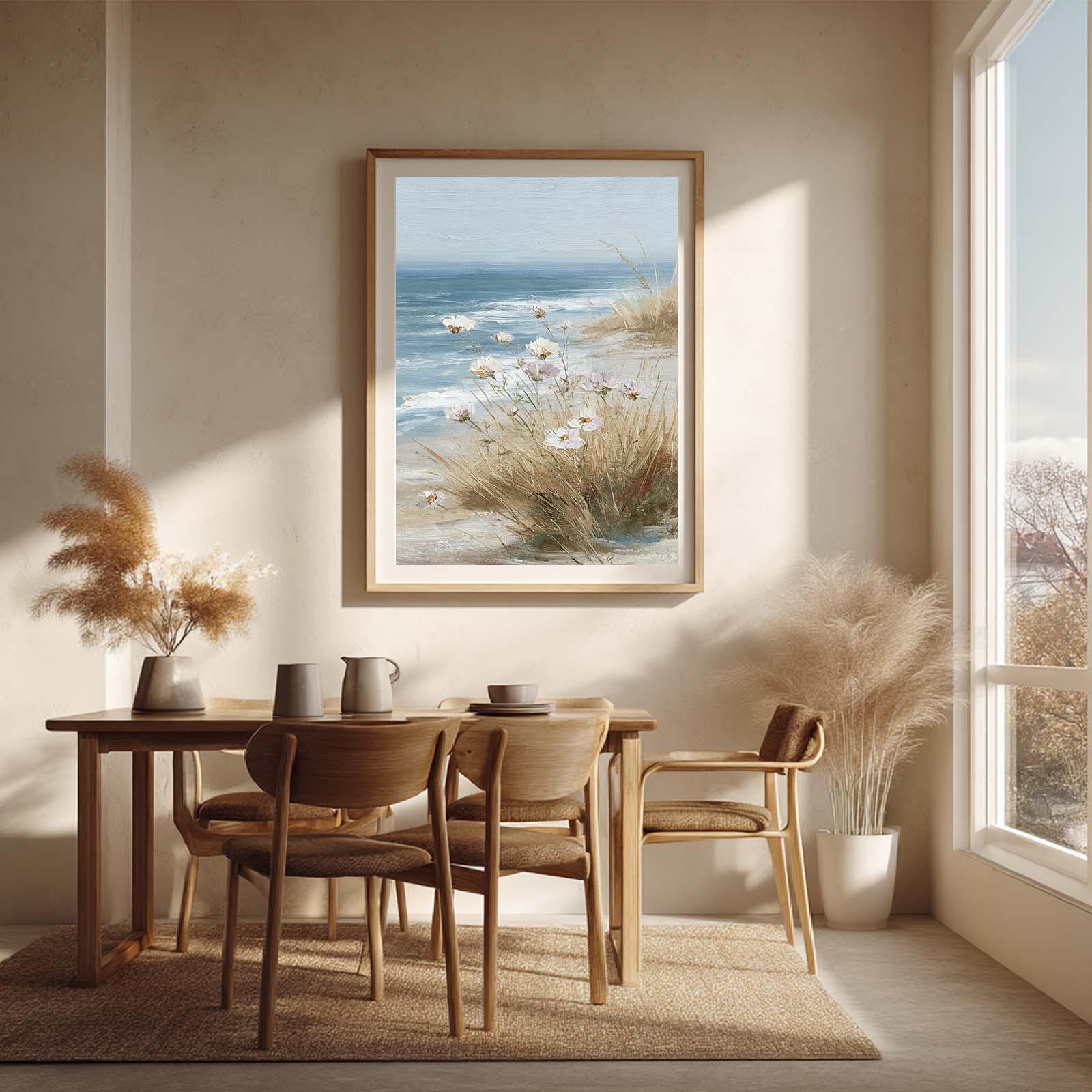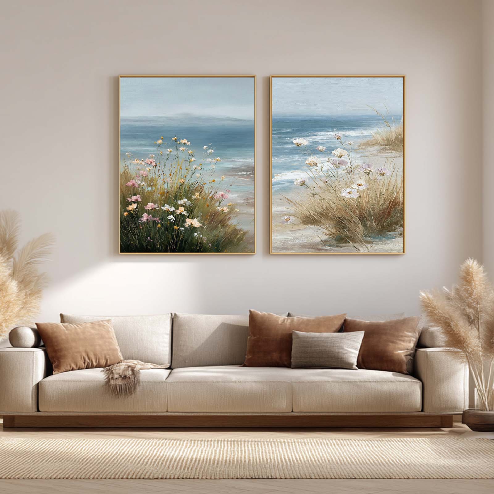 Abstract Landscape Flowers by the Sea Canvas Painting – Wall Art for Living Room Bedroom Decoration, Poster Print, Frameless